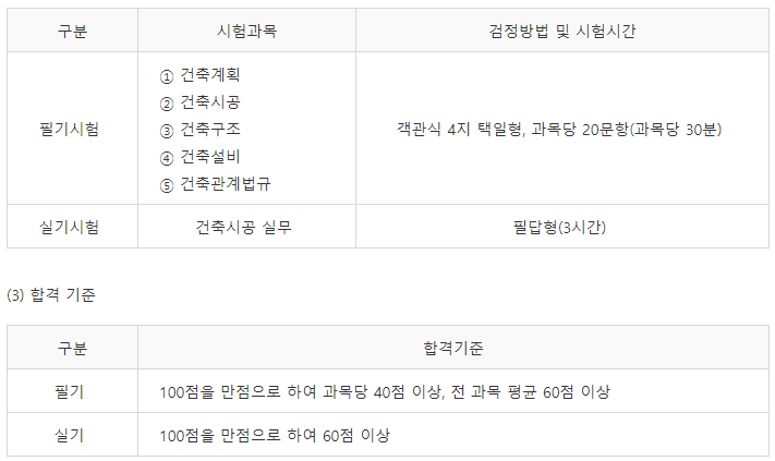3시간동안 진행되는 시험은, 건축시공 실무에 대한 이해도를 요구합니다.