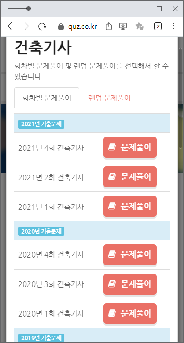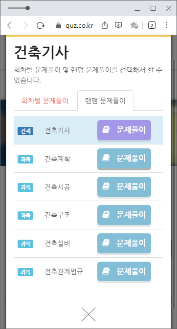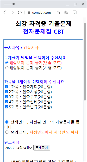 과년도 문제가 100% 보존된 사이트는 아니지만, 과목별로 풀 수 있다는 남다른 장점이 있습니다.