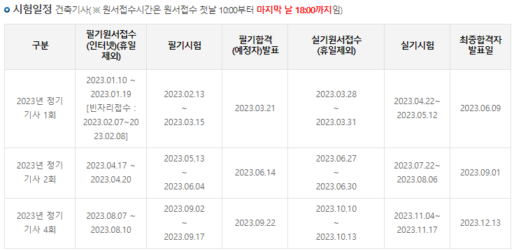 건축기사는 1,2,4회차에 시험이 예정되어 있습니다.