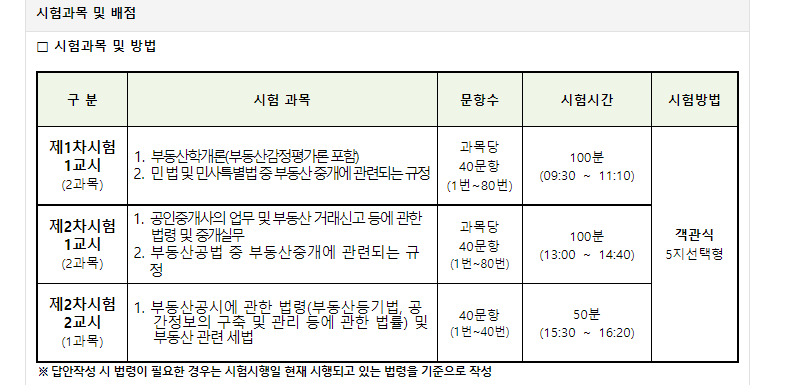 시행 일정에서 언급했듯이, 공인중개사는 1차 시험과 2차 시험으로 나뉘는데요.