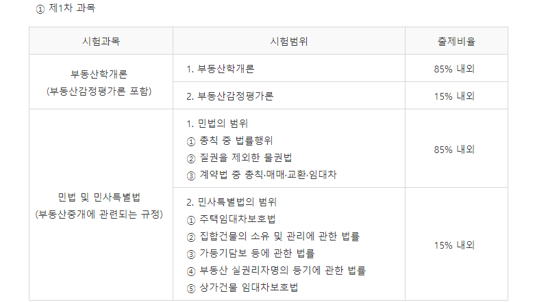 위 표를 참고하셔서 공인중개사 문제 출제 비중을 파악하시길 바랍니다.