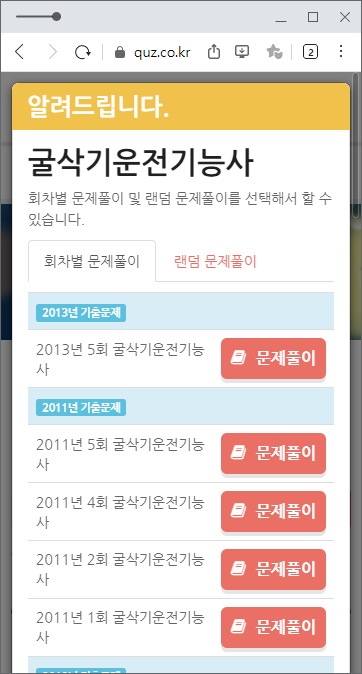 comcbt와 마찬가지로 온라인 문제풀이에 특화된 사이트입니다.