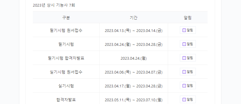 7회 시험 필기 원서접수는 4월 13일부터 14일까지이며, 필기시험은 4월 24일부터 4월 28일까지 시행됩니다.