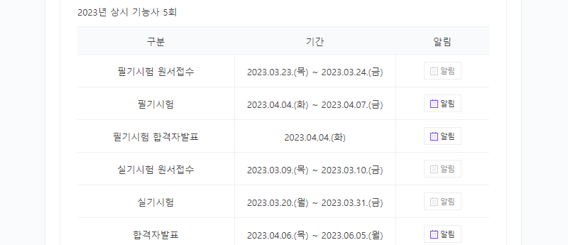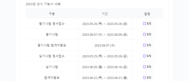 시험이 상시에 있기 때문에, 5회부터 6회, 7회, 8회, 9회, 10회 시행 일정을 먼저 스크랩해왔습니다.