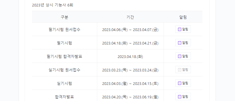 6회 실기시험 원서 접수는 3월 23일부터 24일까지 실시되오며, 실기시험은 4월3일부터 15일까지 실시합니다.