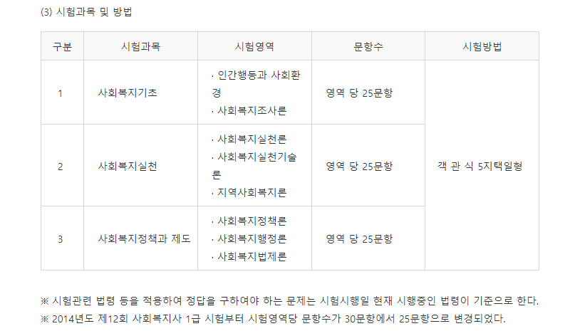 사회복지사 시험은 3개의 과목으로 이루어지며, 각 과목 안에는 2개 이상의 영역이 있습니다.