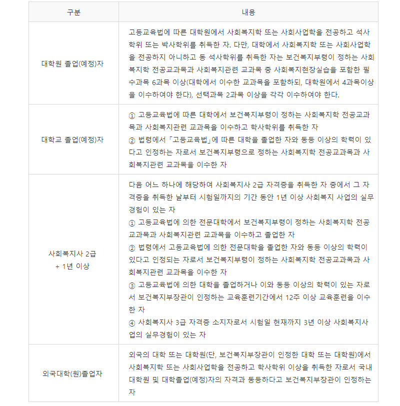 사회복지사 1급 응시자격 및 결격사유 (1)