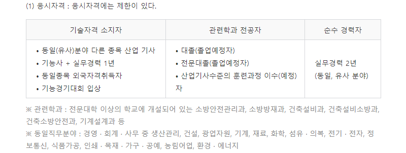 다른 산업기사 자격증과 마찬가지의 응시자격을 두고 있습니다.