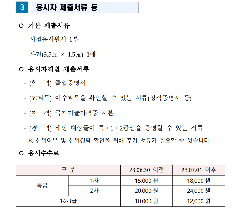 - 제출서류, 응시 수수료