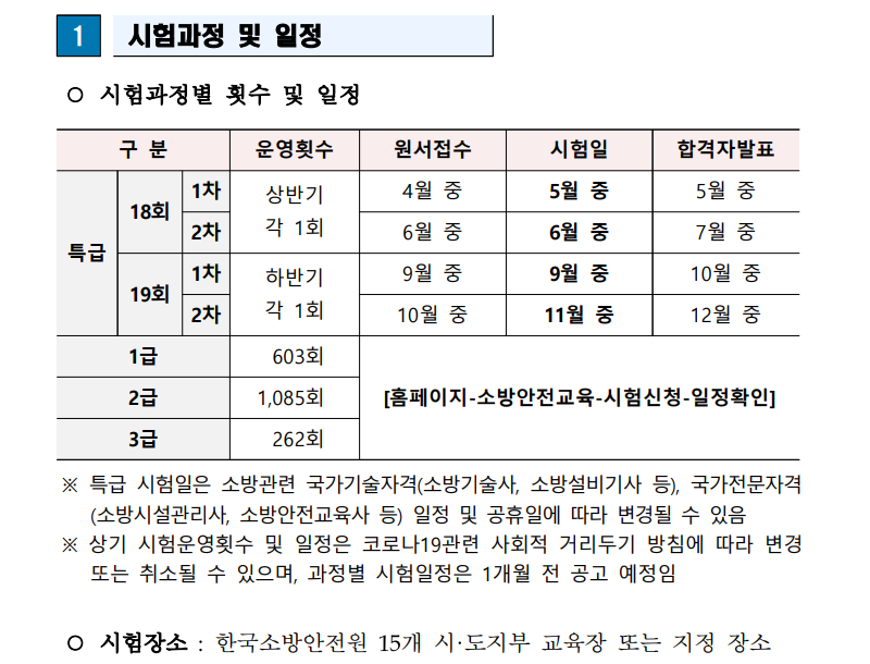 시험 및 교육 일정은 시행 1개월 전에 충분한 여유를 두고 발표될 예정입니다.