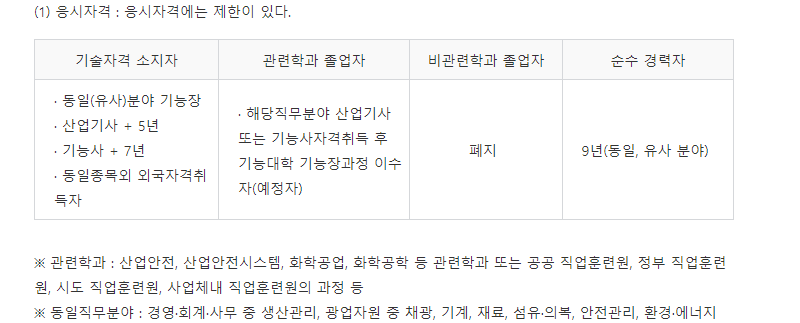 아무래도 '기능장'이라는 높은 자격증이다보니, 응시자격 또한 까다롭습니다.