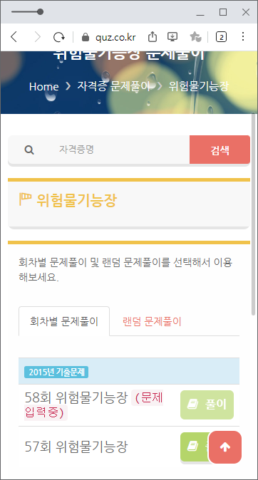 다음은 문제풀이닷컴입니다. 많은 과년도가 업로드되어있진 않지만, '과목별로' 문제를 풀어보기엔 안성맞춤인 사이트로 소개하는 곳입니다.