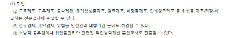 그 외에도 소방직 공무원 혹은 위험물관리와 관련된 훈련교사로 진출하기도 합니다.