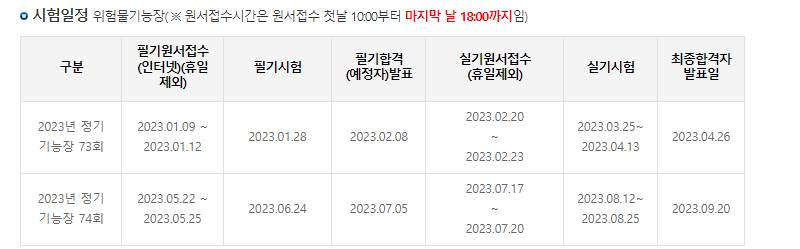 2023년 정기 기능장시험은 총 2번이 예정되어있습니다.