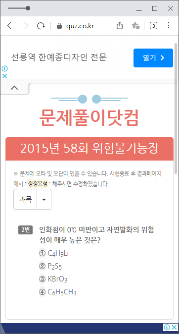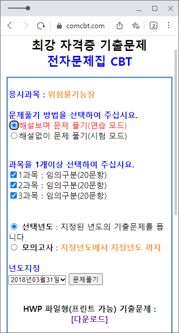 다음은 문제풀이닷컴입니다. 많은 과년도가 업로드되어있진 않지만, '과목별로' 문제를 풀어보기엔 안성맞춤인 사이트로 소개하는 곳입니다.
