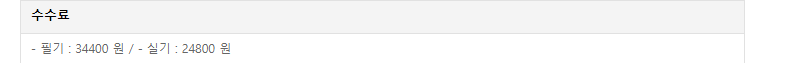 필기시험 응시에 는 34,400원이 필요하며, 실기시험 응시에는 24,800원이 필요합니다. 기사시험보다 다소 가격이 비쌉니다.