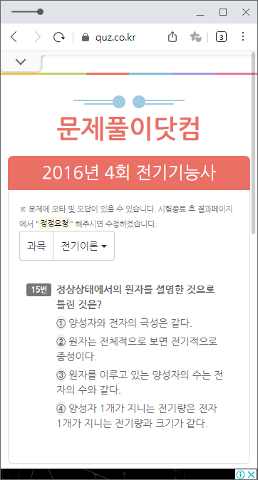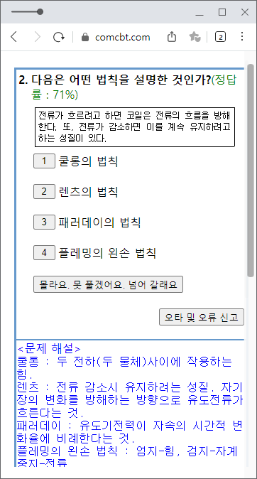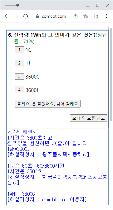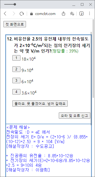 comcbt에선 대부분의 과년도 문제가 100% 복원되어 있을 뿐만 아니라, 사용자들이 서로 코멘트를 달며 해설을 해주기 때문에, 양질의 문제를 풀 수 있다는 장점이 있습니다.