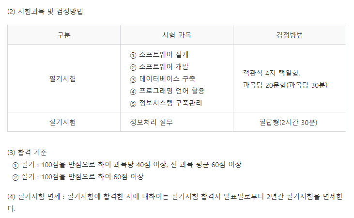 2. 시험 정보(시험 개요, 과목, 합격률, 응시자격, 일정 등)