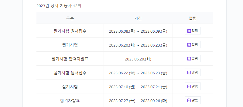 2023년 상시 제빵기능사 12회 시험 일정입니다.