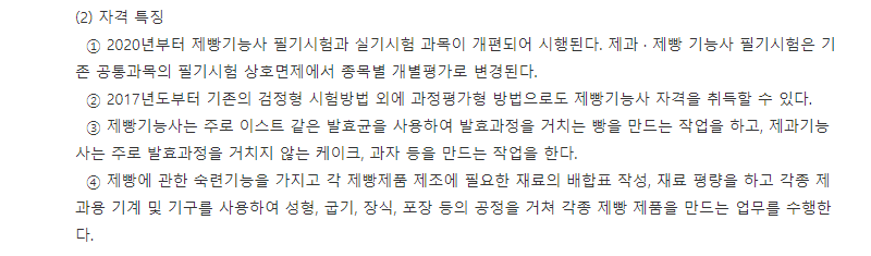 위에서 언급한 것 처럼 과거에 제과기능사와 필기시험을 공유하던 자격증이지만, 2020년부터 분리되어 다른 느낌을 갖고있다고 보시면 됩니다.