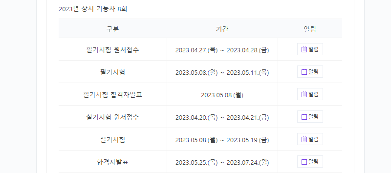 2023년 상시 제빵기능사 8회 시험 일정입니다.
