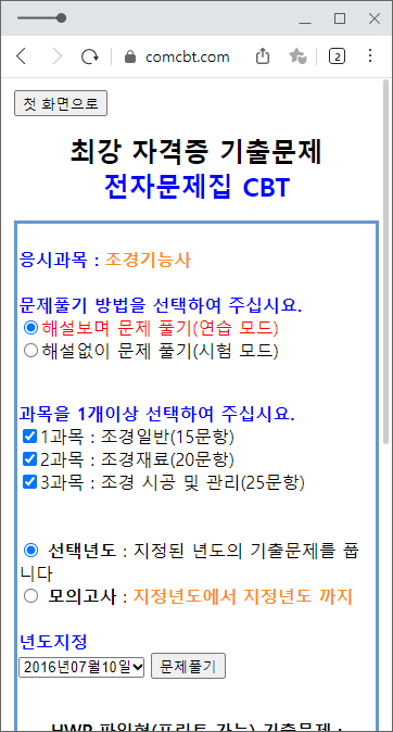 조경기능사 필기 공부를 위해서 많은 분들이 이용하는 comcbt 사이트입니다.