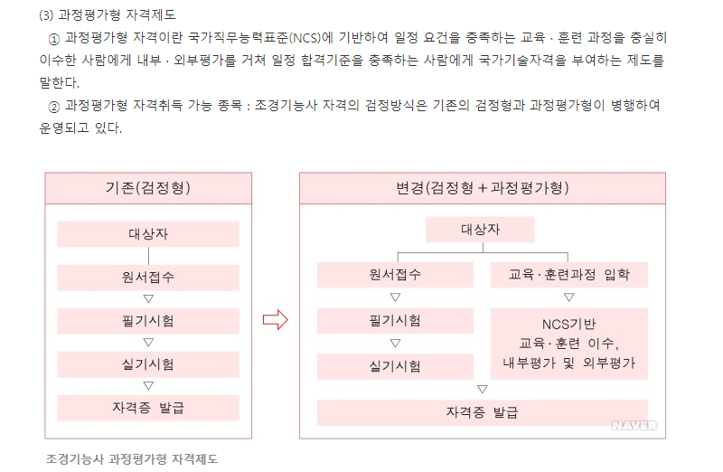 위 사진은 조경기능사 과정평가형 자격제도에 대한 대략적인 흐름입니다.