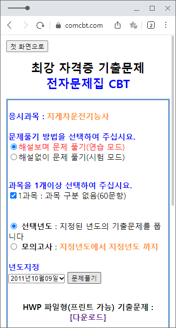 위 사이트는 comcbt 사이트로, 여러 자격증에 대한 필기시험 복원이 100% 이루어진 사이트입니다.