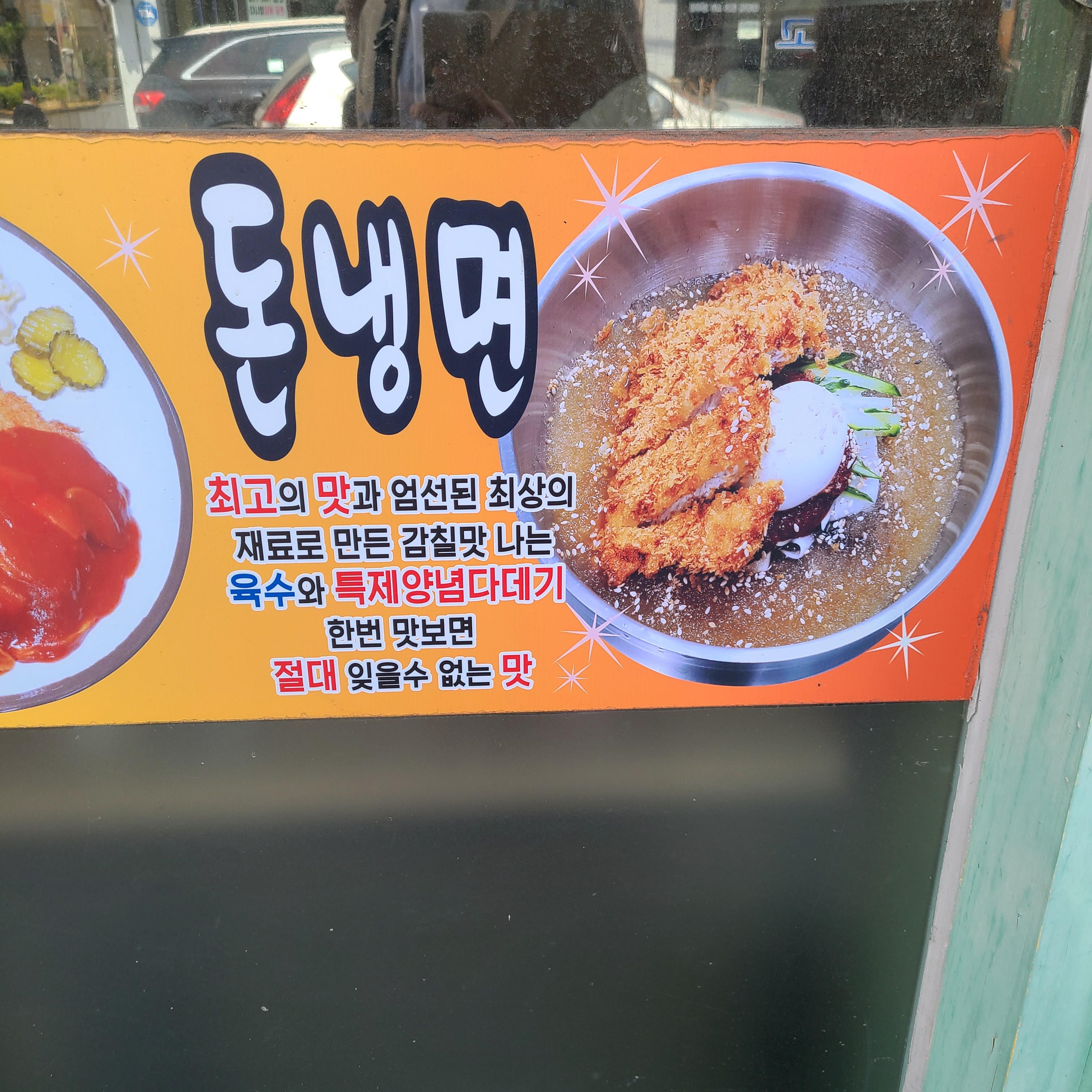 가장 인기있는 메뉴로는 다름아닌 돈냉입니다. 냉면 위에 갓 튀긴 돈까스를 얹어서 주는데요.