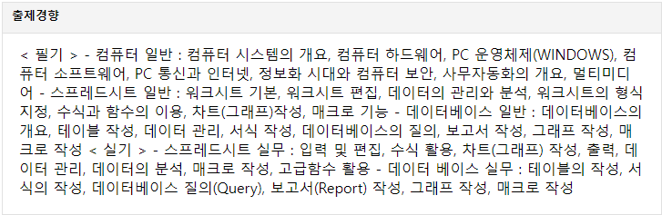 대한상공회의소 자격평가단에서 공식적으로 발표한 시험 출제 경향입니다.