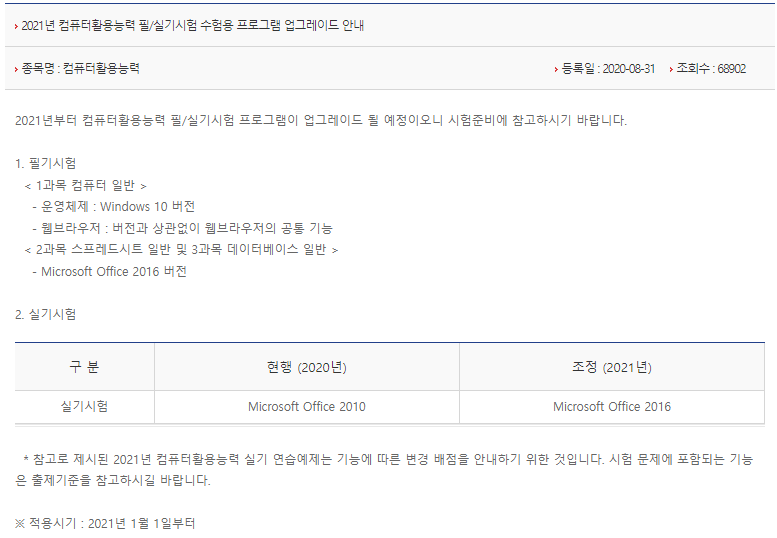 이는 실기에서만 영향을 미치는 것이 아니며, 필기시험 1과목 '컴퓨터 일반'과 2,3과목에서도 엑셀2016버전에 대해 공부하셔야 한다는 변경점이 있습니다.