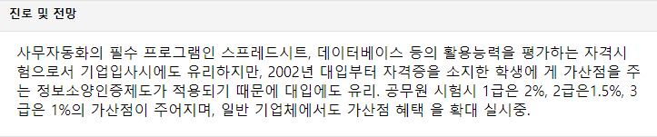 말씀드렸듯, 2급보다는 1급의 가점이 더 큽니다. 난이도가 높지만 1급을 따는 것을 추천드립니다.