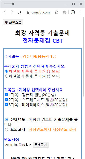 다음으로 소개할 사이트는 문제풀이닷컴인데요, 위 사이트는 과목별, 년도별로 문제 풀이가 가능하다는 장점이 있습니다.