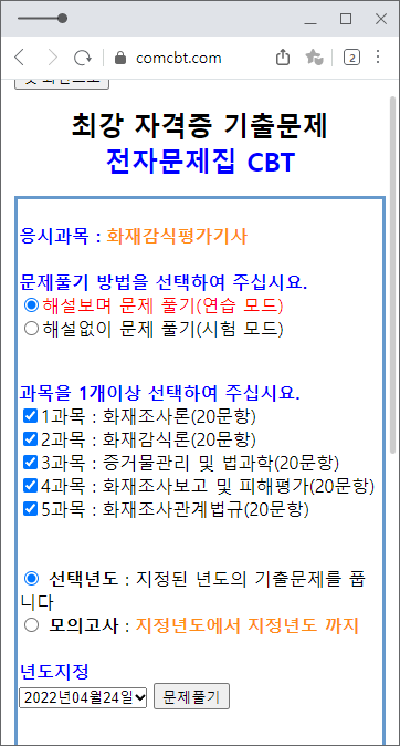 자격증 취득에 가장 도움이 되는 문제풀이 사이트로 항상 거론되는 comcbt입니다.