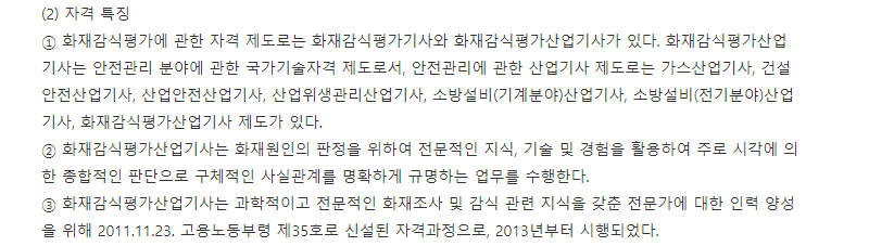 다시 말해, 화재 감식과 관련된 직종은 해당 자격증을 통해 도전이 가능하다고 할 수 있습니다.