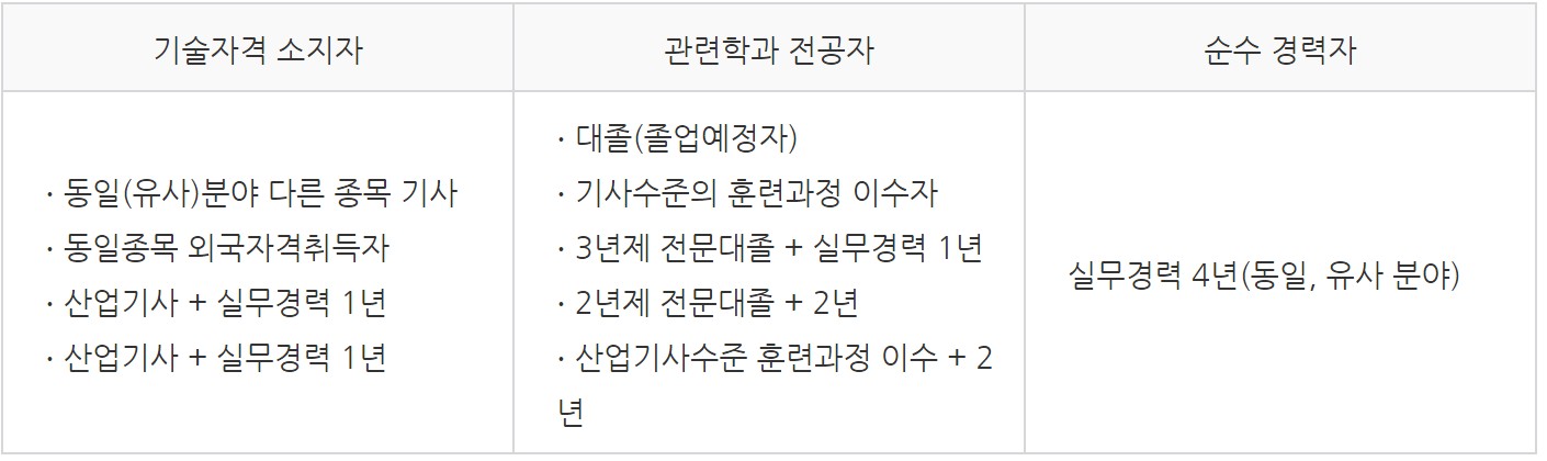 건설안전기사 응시자격은 아래와 같습니다.