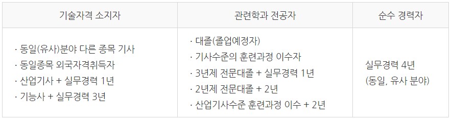 수질환경기사 응시자격은 아래와 같습니다.