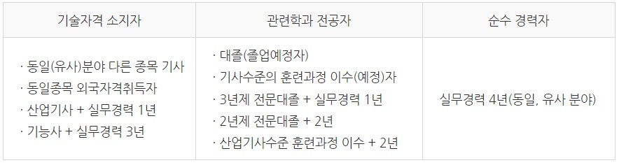 관련학과와 동일직무분야는 위에 나열해두었습니다. 만일 구체적으로 본인이 응시자격을 만족하는지 확인하고싶다면, 아래 링크를 클릭하시길바랍니다.