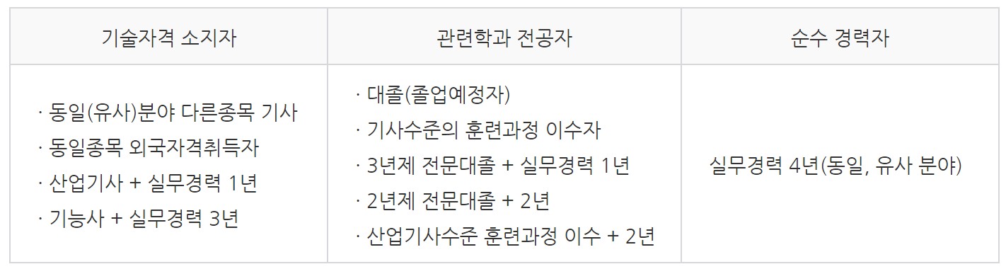 전기기사 응시자격은 아래와 같습니다.