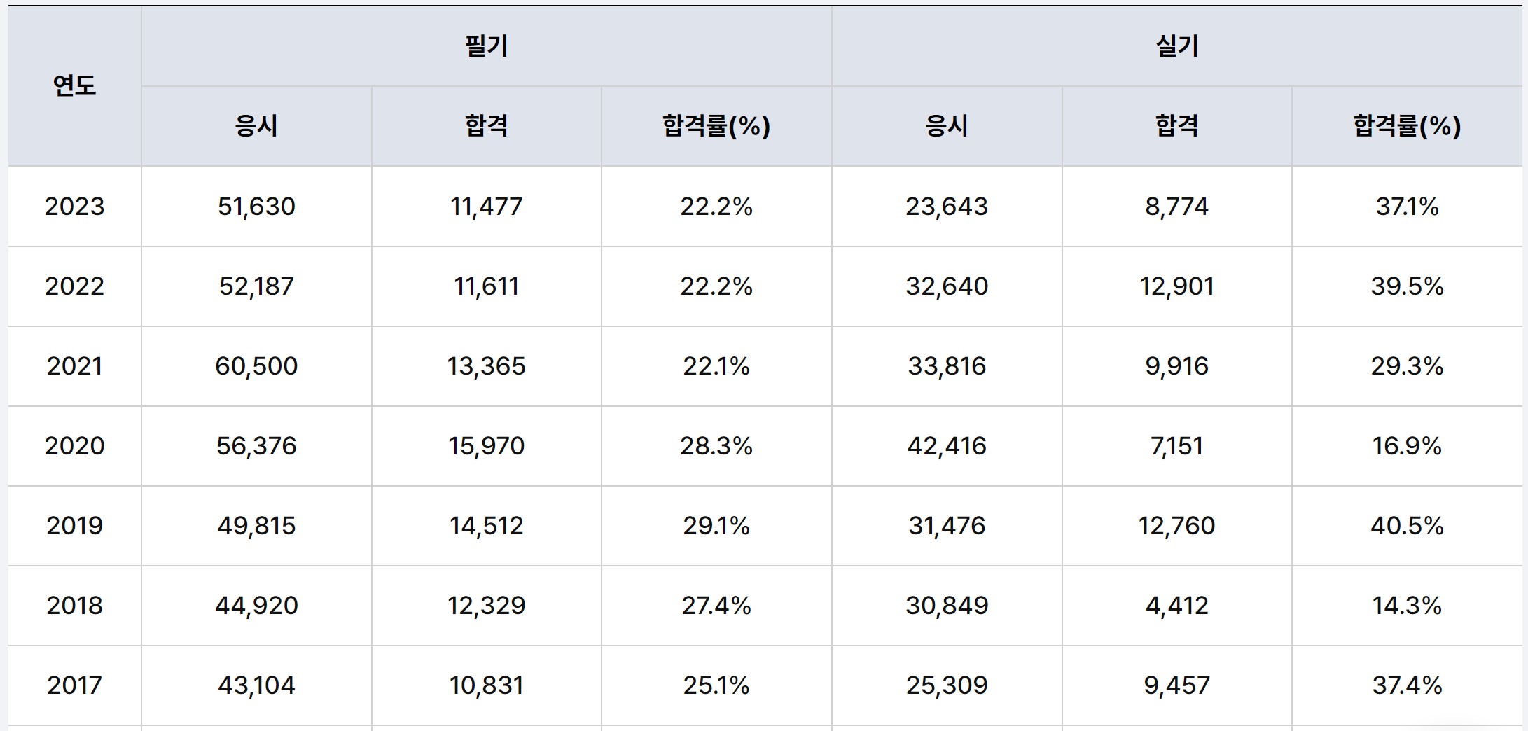 5. 전기기사 필기 합격률, 전기기사 실기 합격률 및 난이도