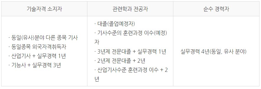 정보처리기사 응시자격은 아래와 같습니다.